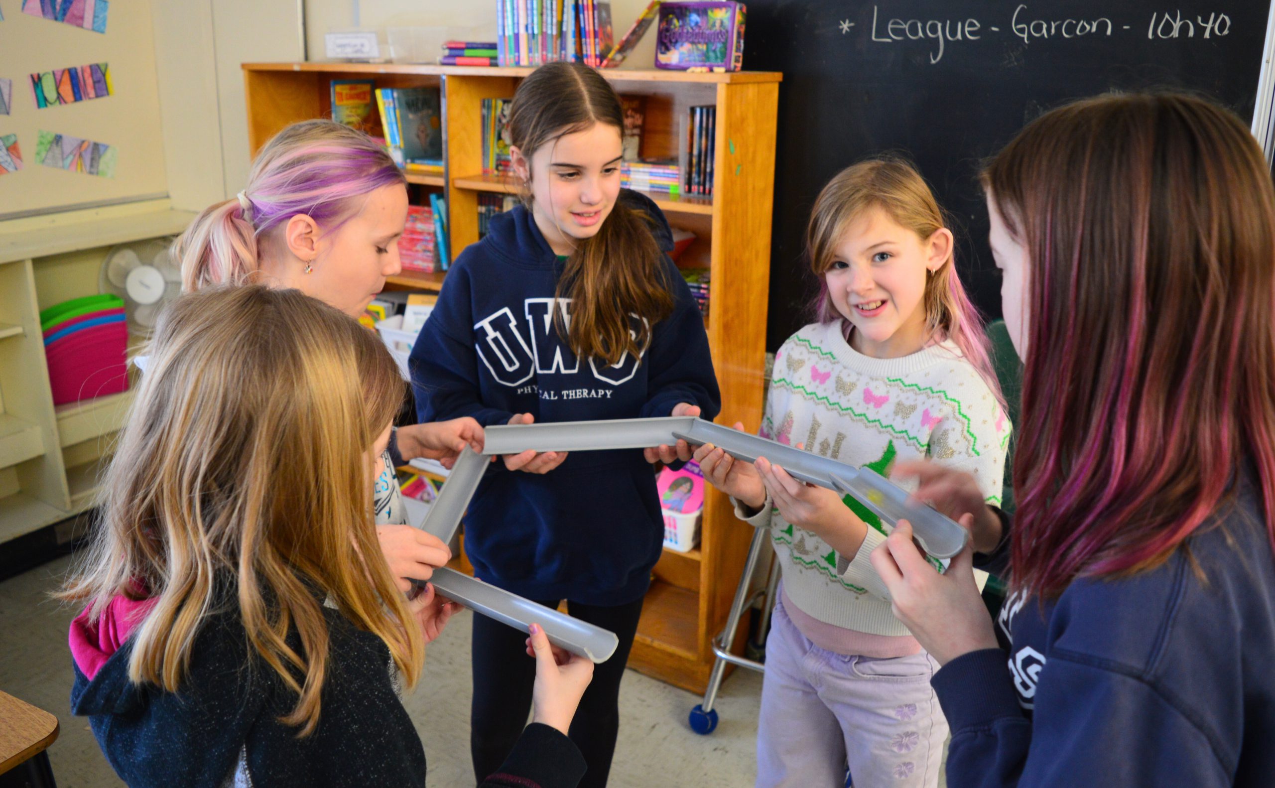 Grade 5 student Tate said, "I liked the marble tube run where we had to get the marble into the cup because it taught us how to problem solve and work together as a team. I learned how to work together by listening to others' ideas, combining ideas to make one good one, and problem-solving as a team."